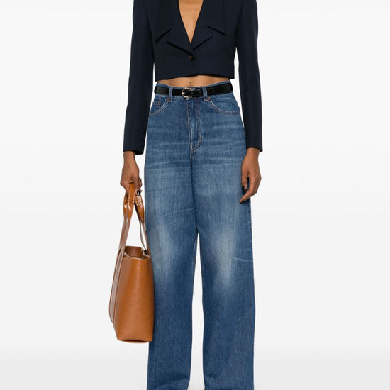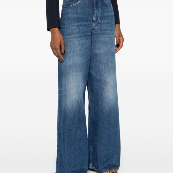 Cotton wide-leg denim jeans