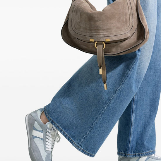 Grey and blue lace-up fastening round toe panelling low-top design chloé kick sneakers