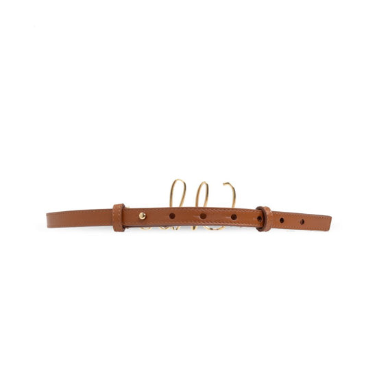 Brown calf leather brass logo-buckle fastening punched holes chloè iconic leather belt size and fit - total length: 76.0 centimetres. width: 1.8 centimetres.