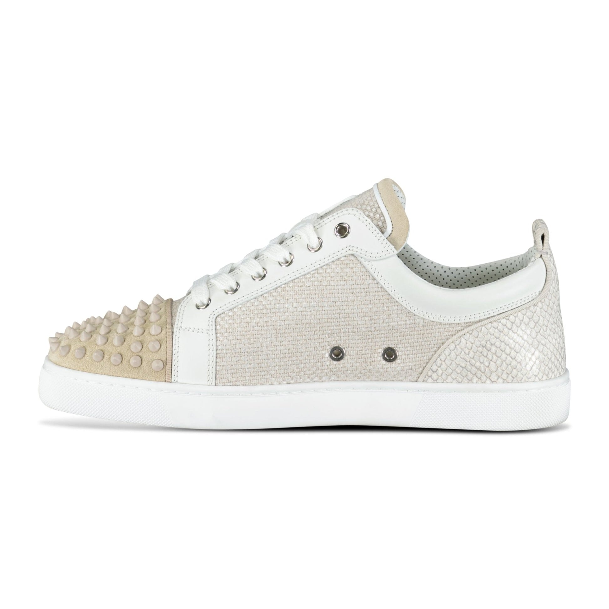 Christian Louboutin Louis Junior Spikes Canvas Sneakers in Beige