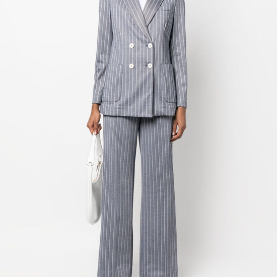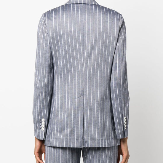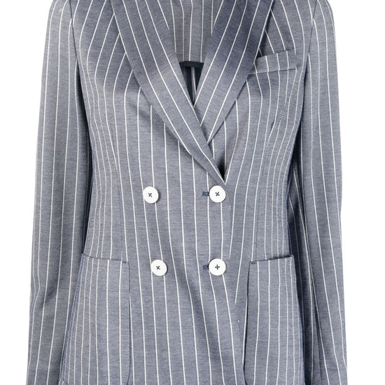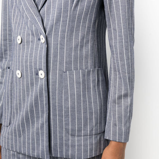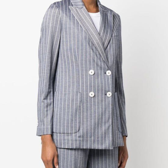 Pinstripe-pattern double-breasted blazer from circolo 1901 featuring blue-grey, cotton, pinstripe pattern, peak lapels, double-breasted button fastening, long sleeves, chest welt pocket and two front patch pockets.  striped double-breasted jacket size and fit - this piece fits true to size. we recommend you get your regular size. model is 1,75m / 5ft 8in wearing size 40 (it)