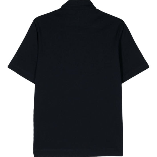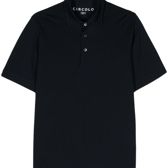 Navy blue stretch-cotton piqué weave classic collar front button placket short sleeves short side slits straight hem classic pique polo shirt size and fit - this piece fits true to size. we recommend you get your regular size. model is 1,84m / 6ft 1in wearing size m