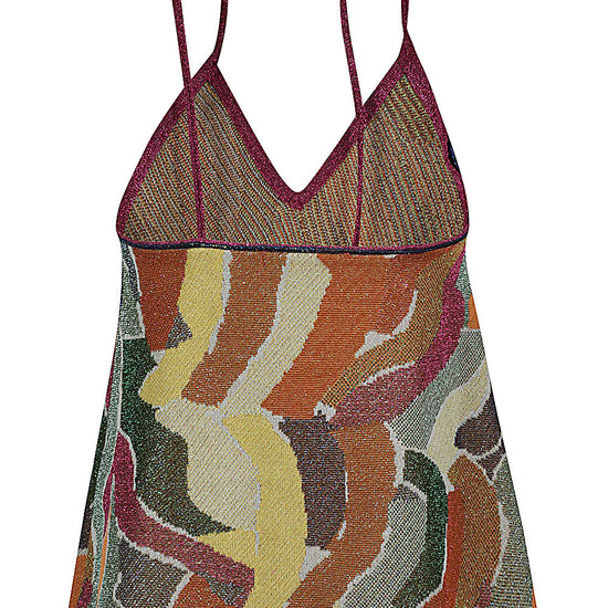 Top with lurex jacquard pattern. thin straps, flared at the bottom. regular fit, hip length. canotta printed top size and fit - this piece fits true to size. we recommend you get your regular size. model is 1,75m / 5ft 8in wearing size 40 (it)