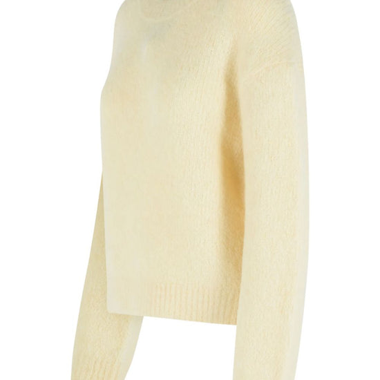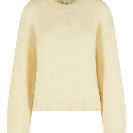 Ivory knitted crew neck ribbed hem and cuffs wool crewneck jumper