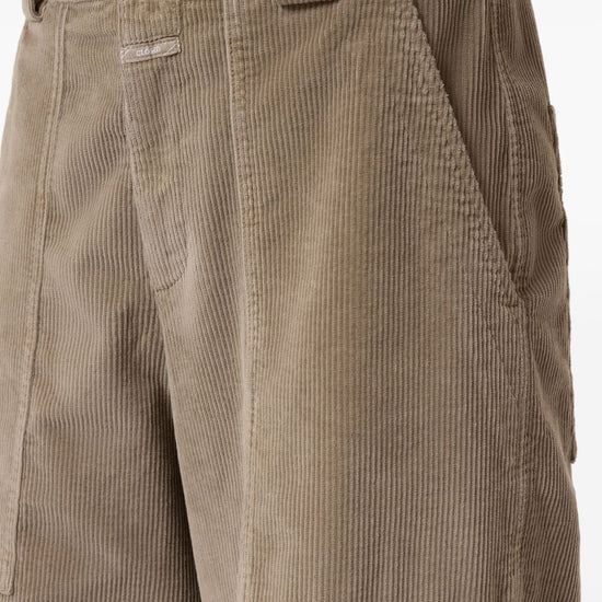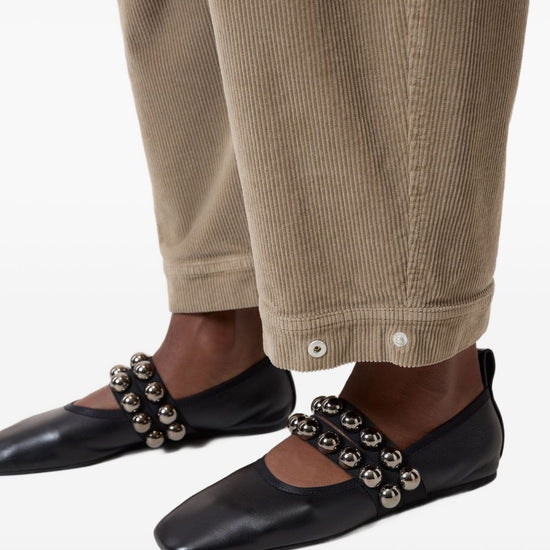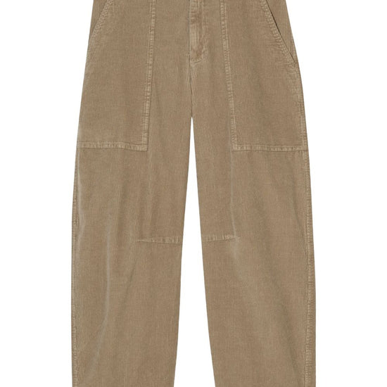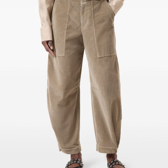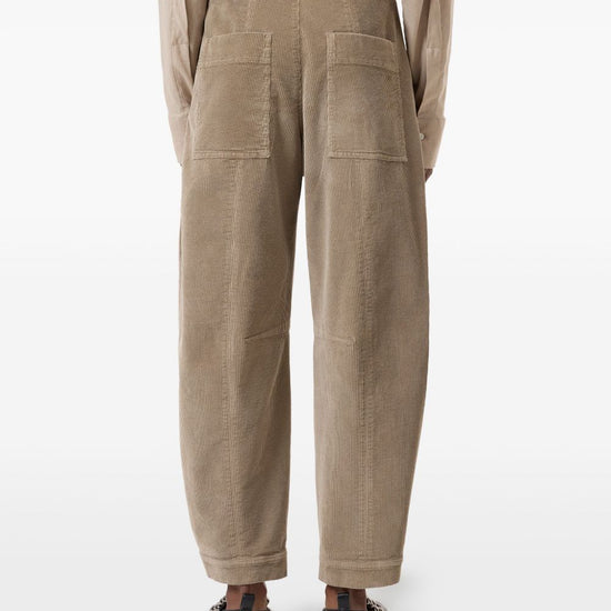 Khaki green front pockets button fastening belt loops cropped hem rhannon cotton trousers