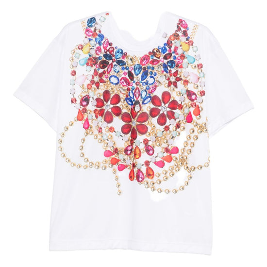 White jewellery print short sleeves round neck straight hem printed t-shirt