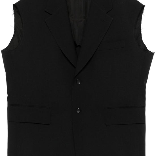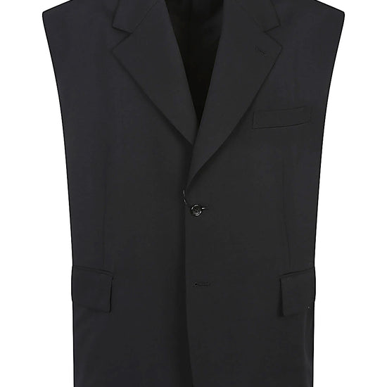 Blazer vest, sleeveless, v-neck, front buttons and welt pockets. wool sleeveless jacket size and fit - this piece fits true to size. we recommend you get your regular size. model is 1,84m / 6ft 1in wearing size m