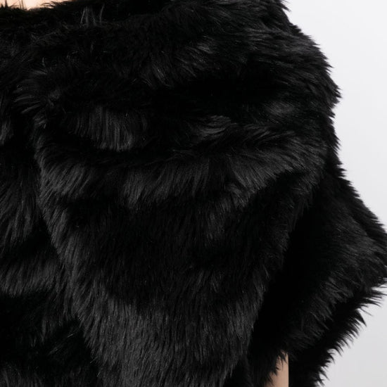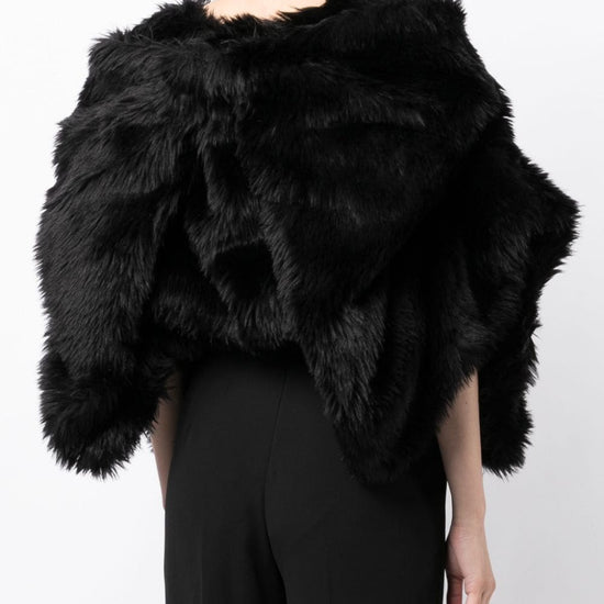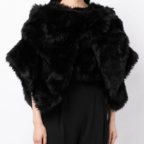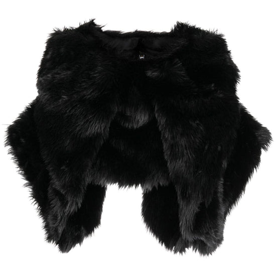 Fur-design cropped blouse from comme des garçons featuring black, faux-fur design, round neck, wide sleeves, half-length sleeves, straight hem and cropped. faux fur cropped jacket size and fit - this piece fits true to size. we recommend you get your regular size. model is 1,75m / 5ft 8in wearing size s