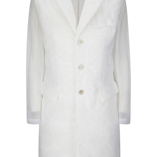 White front button fastening two side flap pockets long sleeves buttoned cuffs single-breasted coat size and fit - this piece fits true to size. we recommend you get your regular size. model is 1,75m / 5ft 8in wearing size s