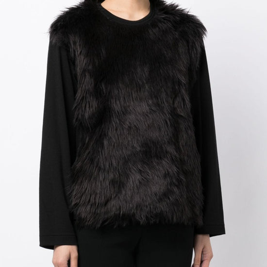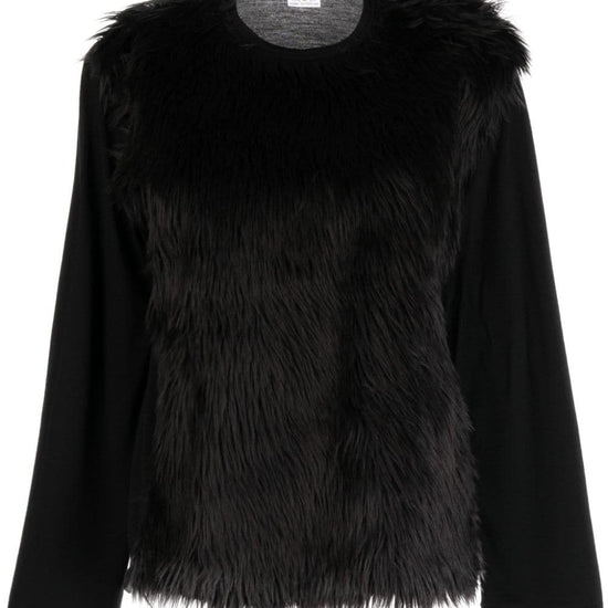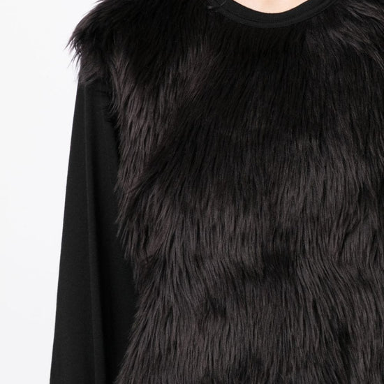 Fur-detailing long-sleeve t-shirt from comme des garçons featuring black, wool, faux-fur detailing, crew neck, long sleeves and straight hem. faux-fux t-shirt size and fit - this piece fits true to size. we recommend you get your regular size. model is 1,75m / 5ft 8in wearing size s