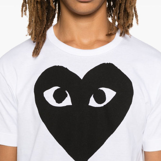 White/black cotton lightweight jersey heart print at the chest crew neck short sleeves straight hem when buying this unisex item, keep in mind that it is graded in standard men's sizing. cotton t-shirt