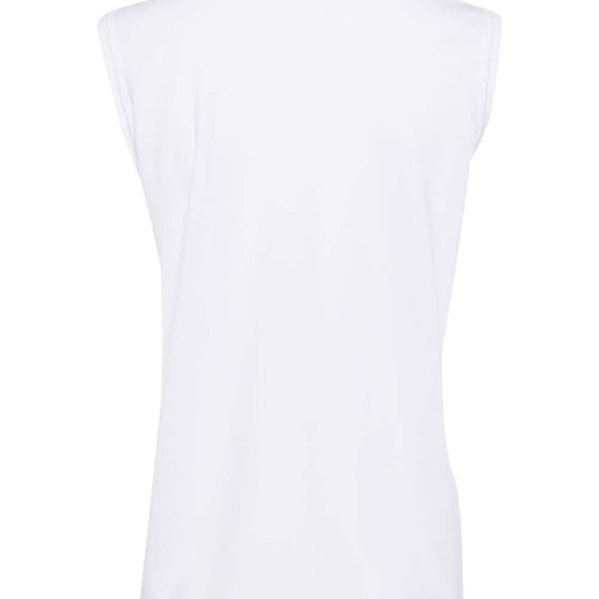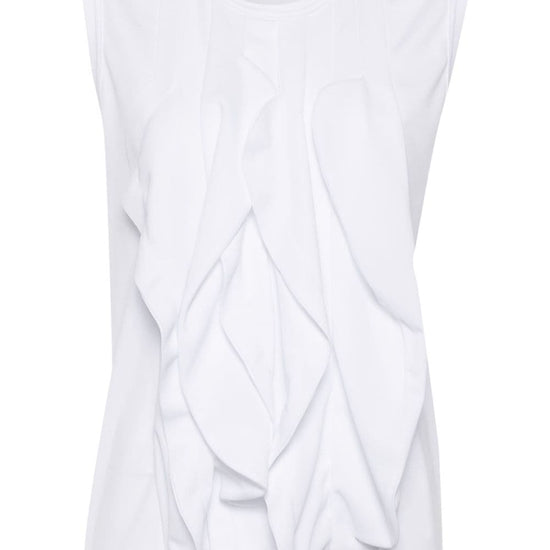 White ruffled detailing round neck sleeveless straight hem ruffled tank top