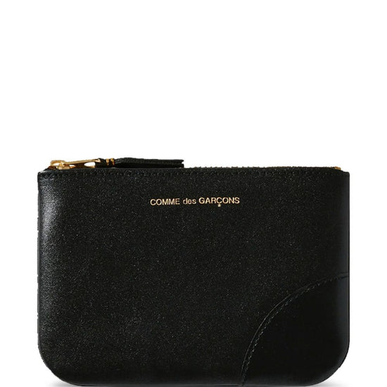 Black, zip closure, gold-tone hardware, seam detail. leather credit card case size and fit - width 14.5 cm. length 10.5 cm.