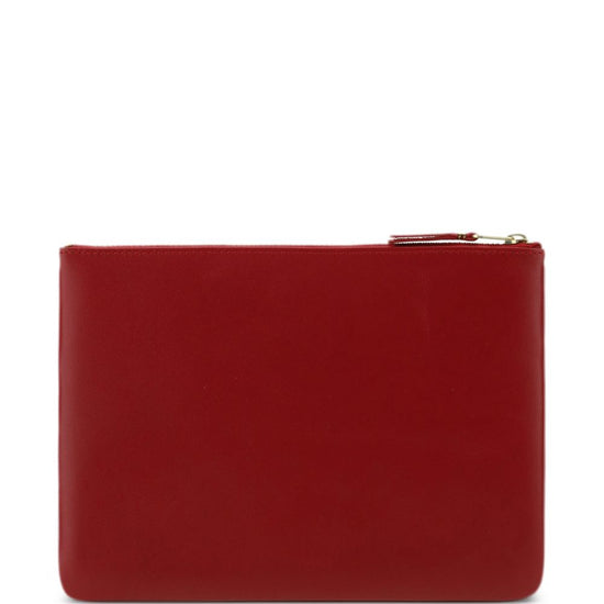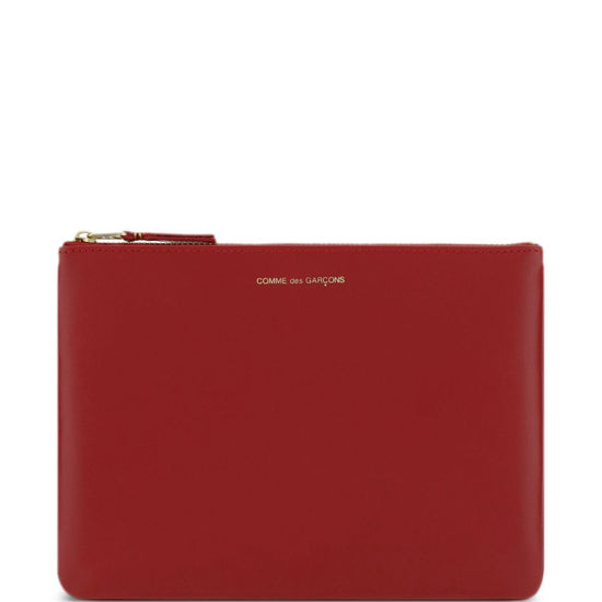 Red, calf leather, logo stamp to the front, top zip fastening, main compartment, gold-tone hardware. leather credit card case size and fit - width 16 cm. length 21.5 cm.