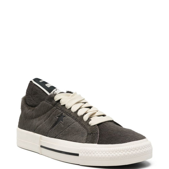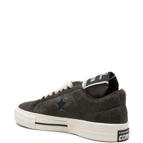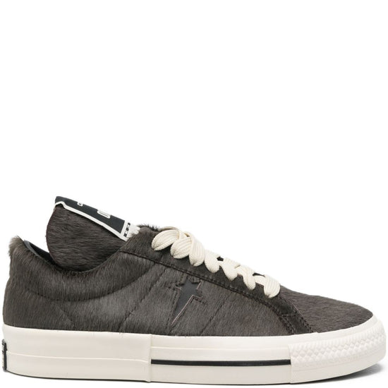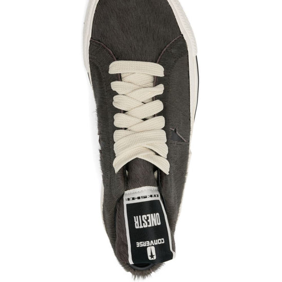 Dark dust fur texture lace-up fastening low top logo patch onestar sneakers