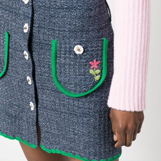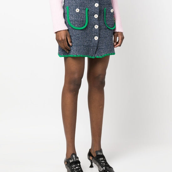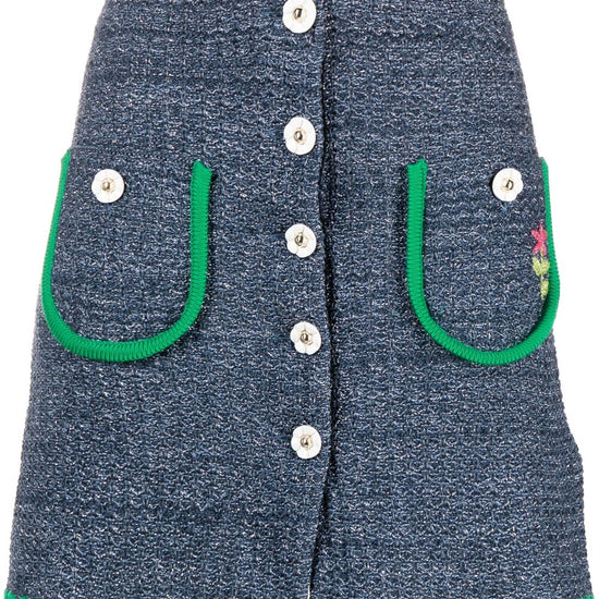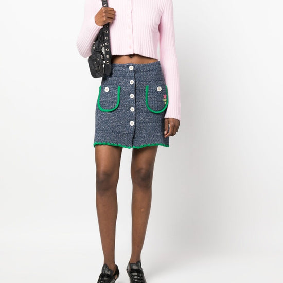 Gonna mini skirt from cormio featuring denim, apple green, cotton blend, front button fastening, two front patch pockets and ribbed hem. minigonna, c/glitter silver, tasche frontali cotton mini skirt size and fit - this piece fits true to size. we recommend you get your regular size. model is 1,75m / 5ft 8in wearing size 40 (it)