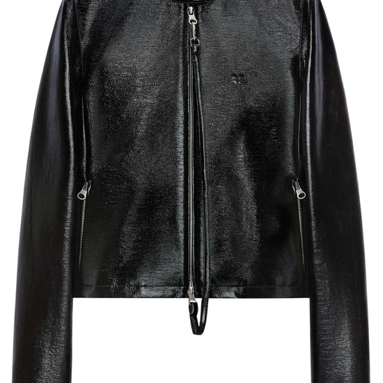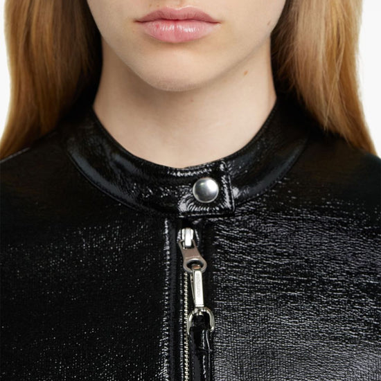 Black zip fastening two side zip-fastening pockets embroidered logo at the chest long sleeves vinyl city jacket size and fit - this piece fits true to size. we recommend you get your regular size. model is 1,75m / 5ft 8in wearing size 36 (fr)