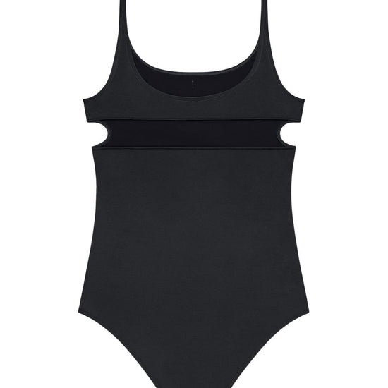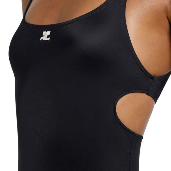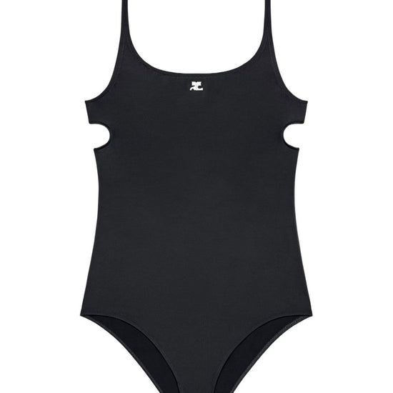 Black cut-out detail logo-embroidered thin-straps round-neck be mindful to try on swimwear over your own garments. cut-out swimsuit