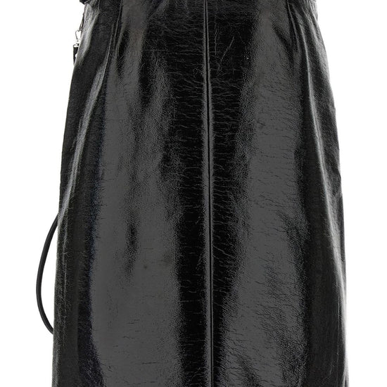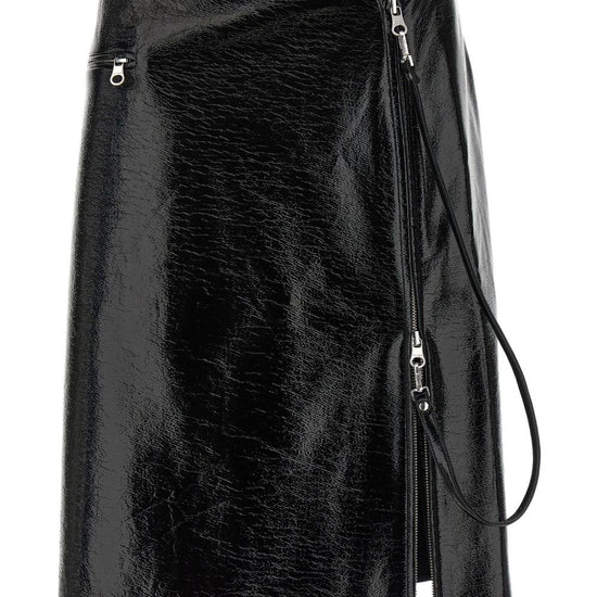 zip detailing vynil midi skirt