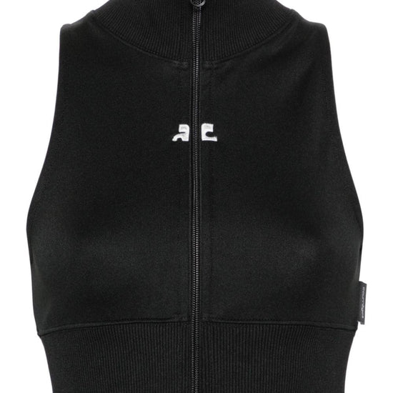 Black logo patch to the front logo patch to the side ribbed high neck front two-way zip fastening sleeveless ribbed hem cropped cropped track vest size and fit - this piece fits true to size. we recommend you get your regular size. model is 1,75m / 5ft 8in wearing size s