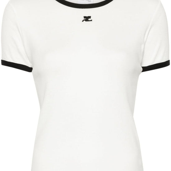 White/black cotton logo embellishment contrasting trim short sleeves round neck straight hem logo cotton t-shirt