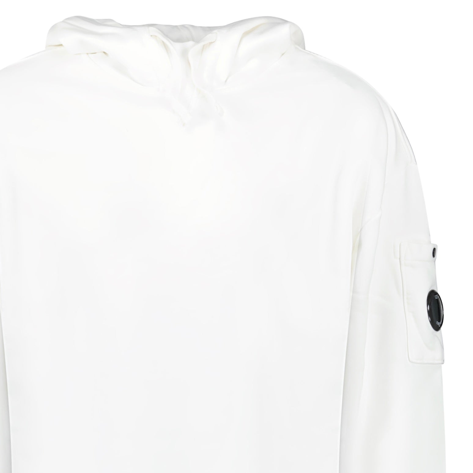 CP Company Diagonal Raised Fleece Lens Hooded Sweatshirt in White