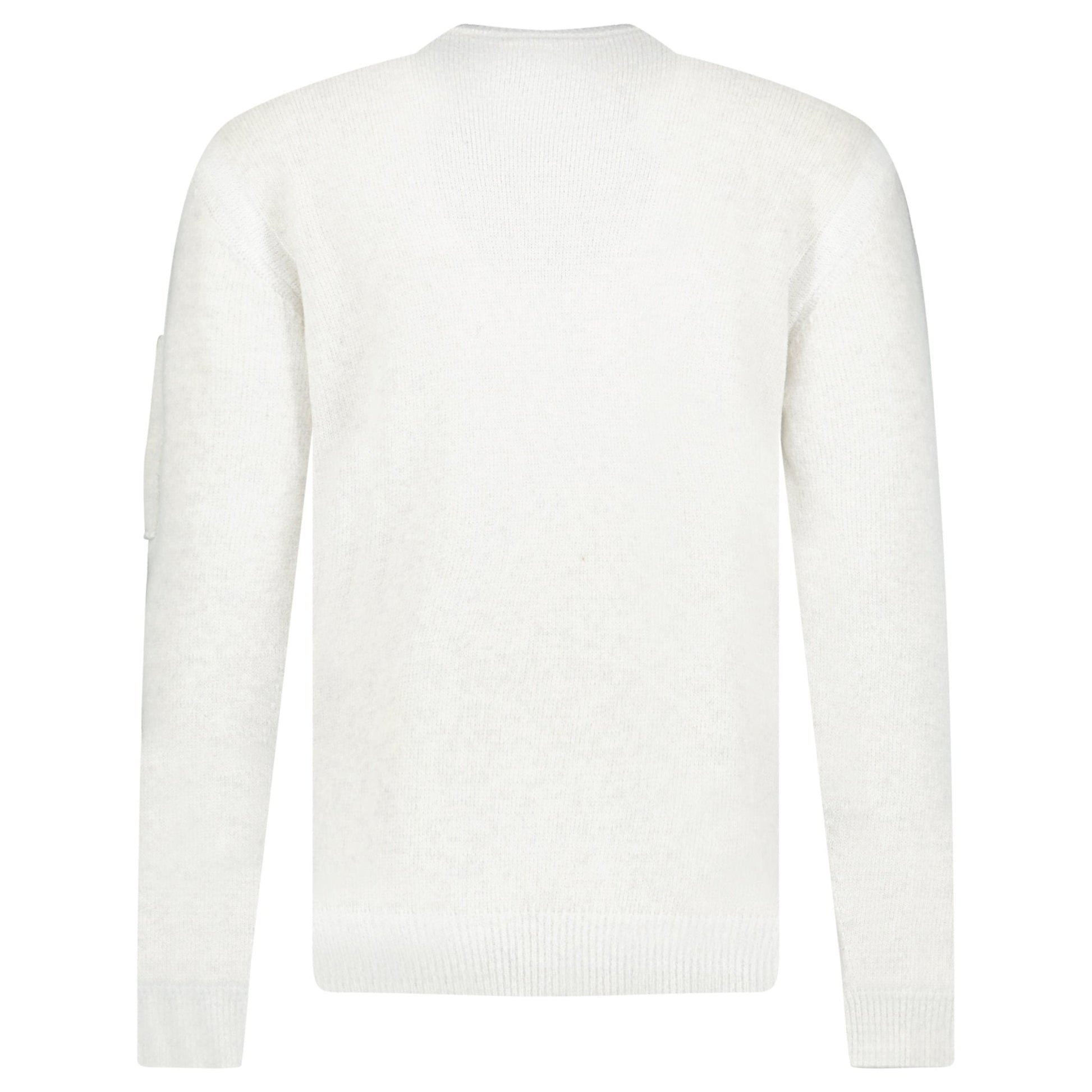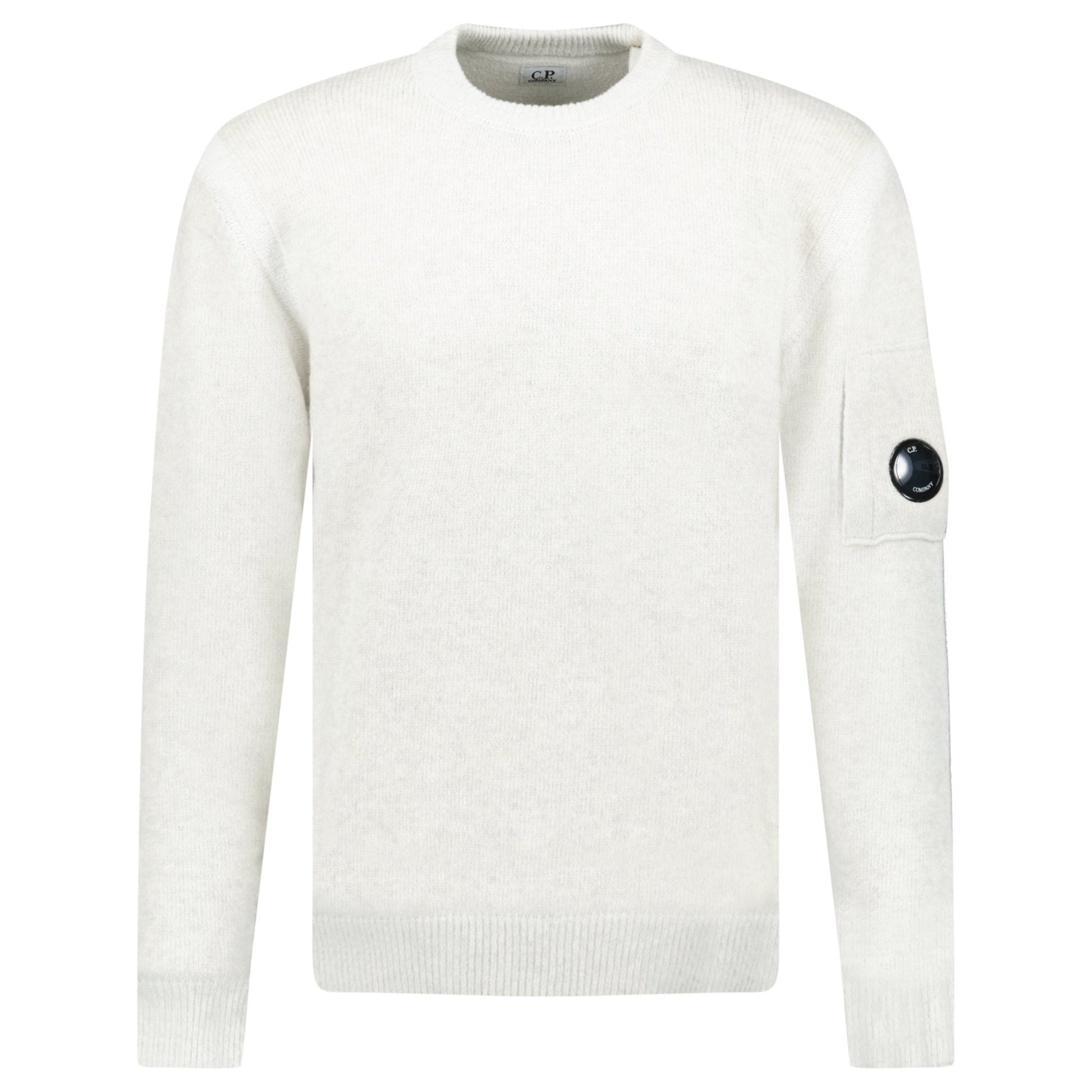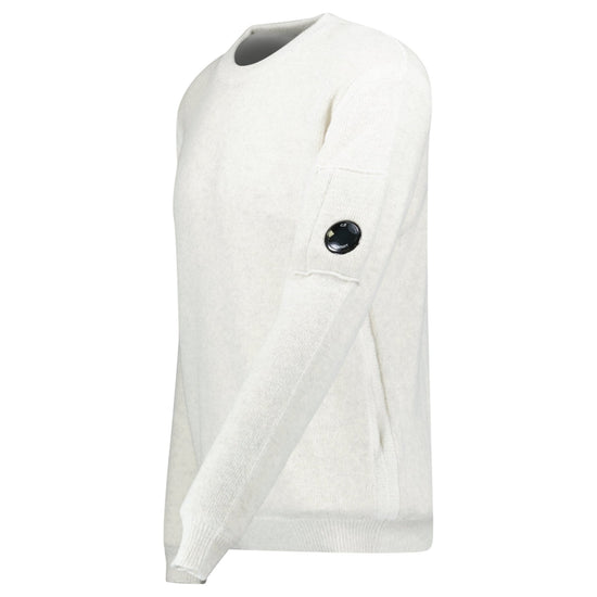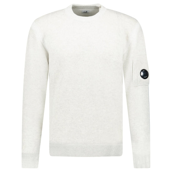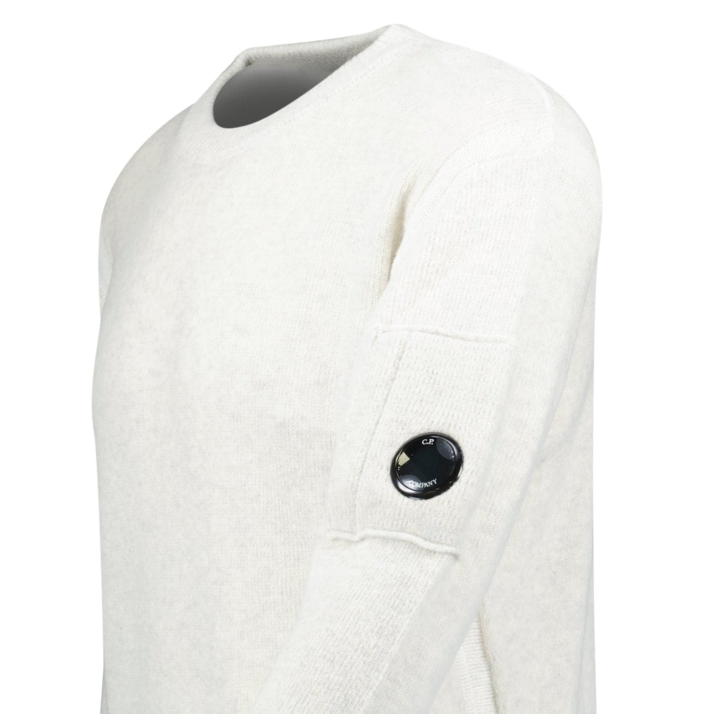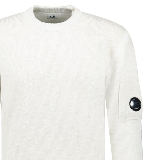 CP Company Fleece Knit Crewneck Vanisé Lens Knit Jumper White Melange