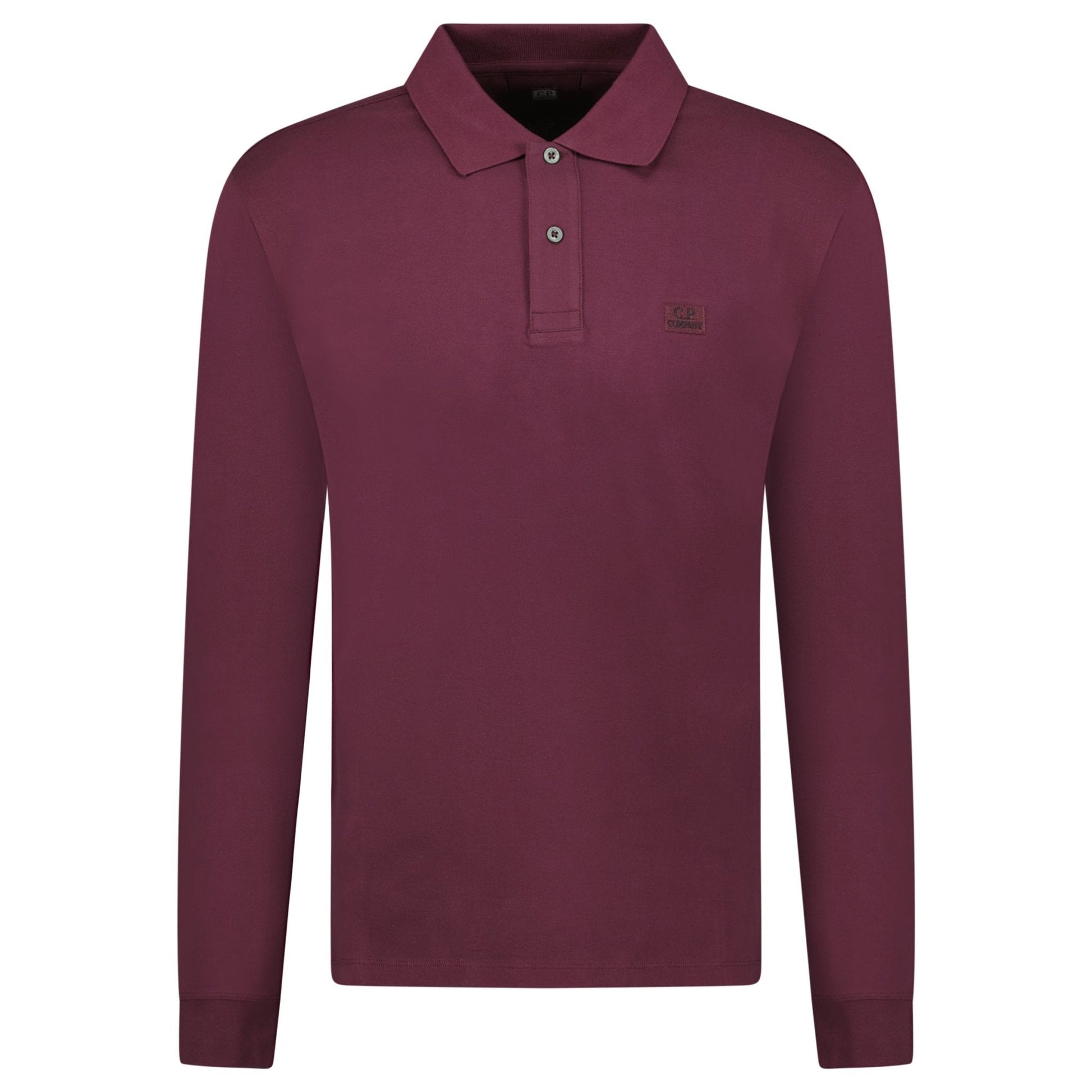 elevate your casual wardrobe with the cp company button long sleeve polo t-shirt in potent purple. crafted with a classic design, this long-sleeve polo combines comfort and style, making it a versatile addition to any outfit. featuring a traditional collar and two-button placket, it offers a timeless polo silhouette, while the embroidered logo patch on the chest adds a subtle touch of brand identity. the ribbed cuffs on the long sleeves ensure a snug fit, making it ideal for layering in cooler weather.