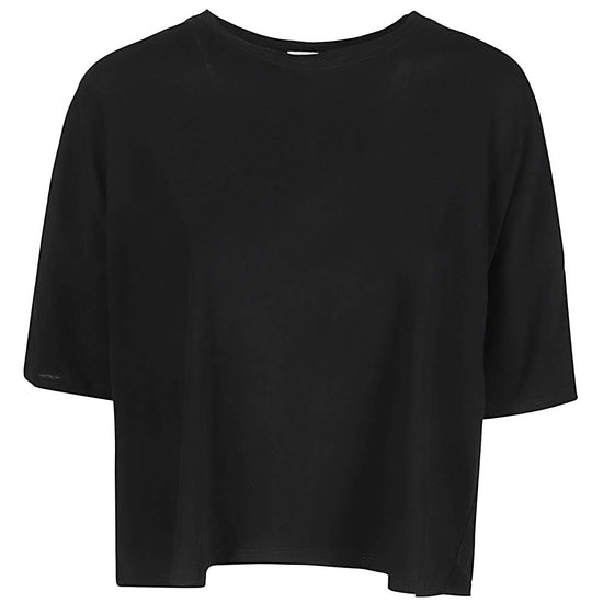 Cotton crewneck t-shirt. color: black. pullover m/l oversized cotton t-shirt size and fit - this piece fits true to size. we recommend you get your regular size. model is 1,75m / 5ft 8in wearing size 36 (fr)