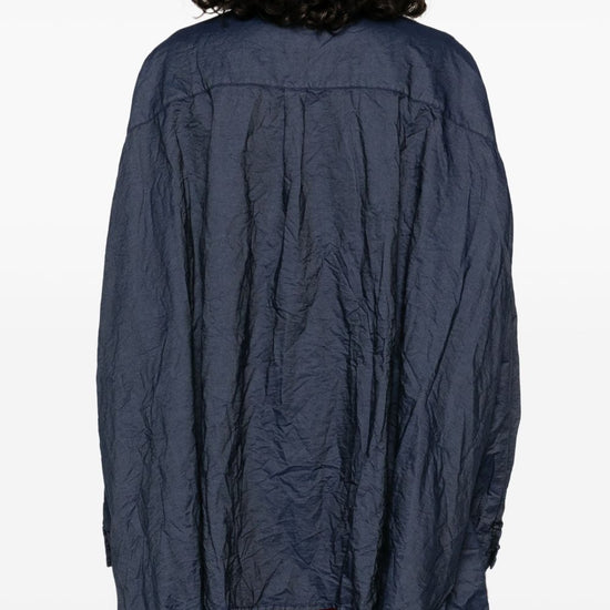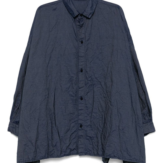 Indigo blue box-pleat detail front button fastening classic collar drop shoulder cotton shirt size and fit - this piece fits true to size. we recommend you get your regular size. model is 1,75m / 5ft 8in wearing size uni