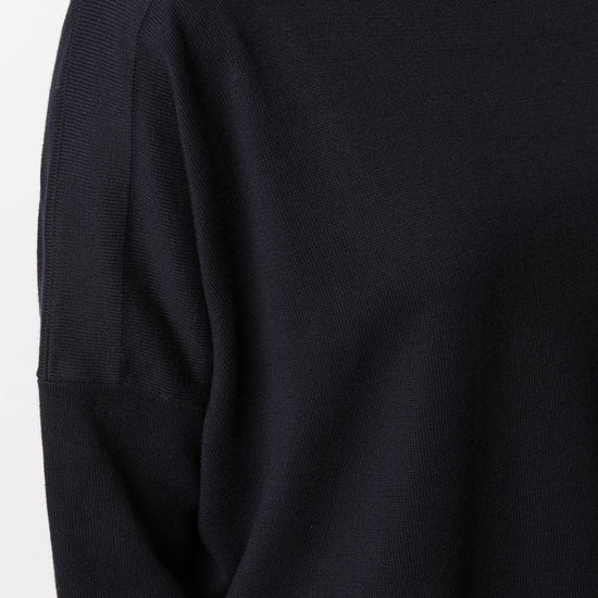 Navy cotton knitted construction ribbed detailing tonal stitching boat neck three-quarter length sleeves flared design  cotton boat-neck sweater size and fit - this piece fits true to size. we recommend you get your regular size. model is 1,75m / 5ft 8in wearing size uni