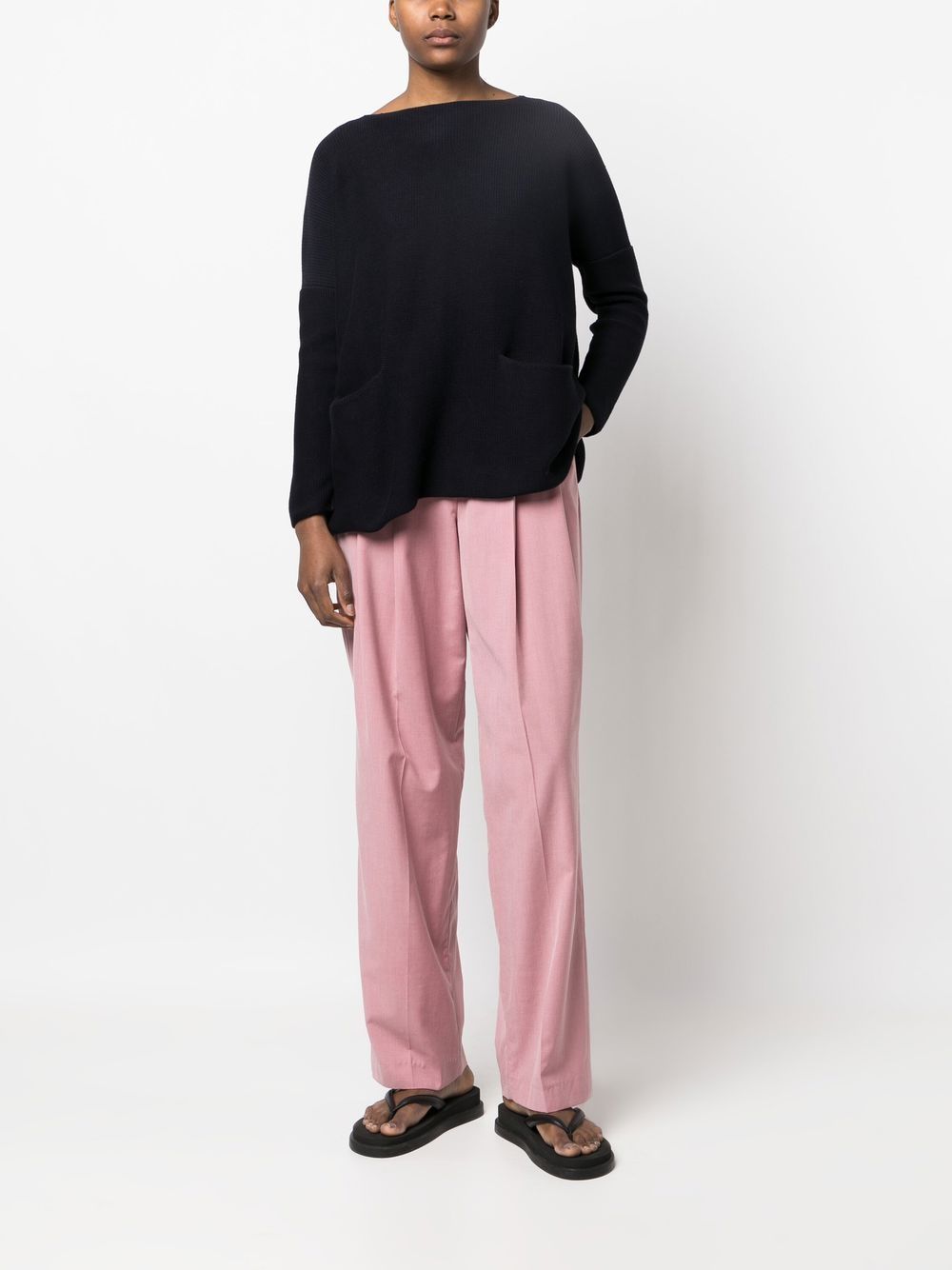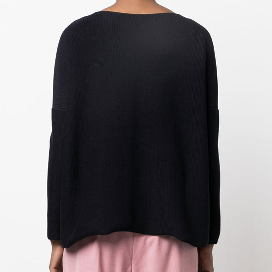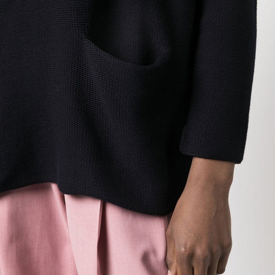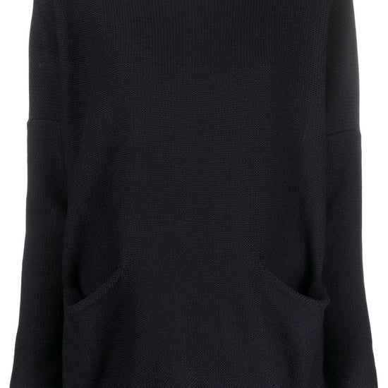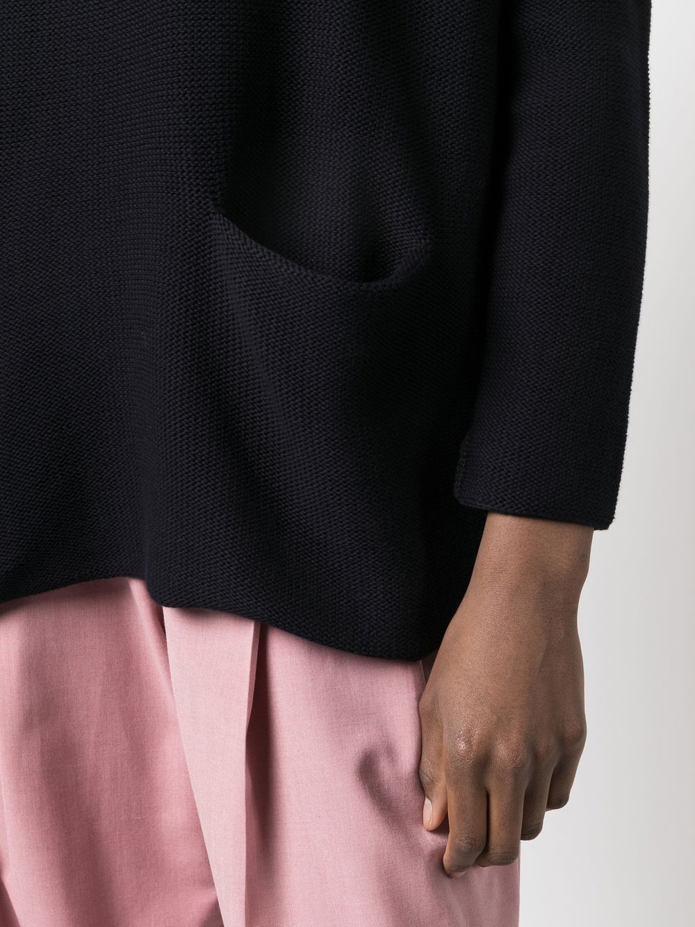 Open pocket boat neck jumper from daniela gregis featuring navy blue, cotton, knitted construction, boat neck, two front patch pockets, long sleeves and drop shoulder. uomo, larghissima, lunghissima cotton boat neck sweater size and fit - this piece fits true to size. we recommend you get your regular size. model is 1,75m / 5ft 8in wearing size uni