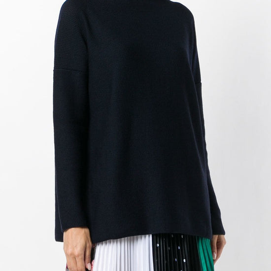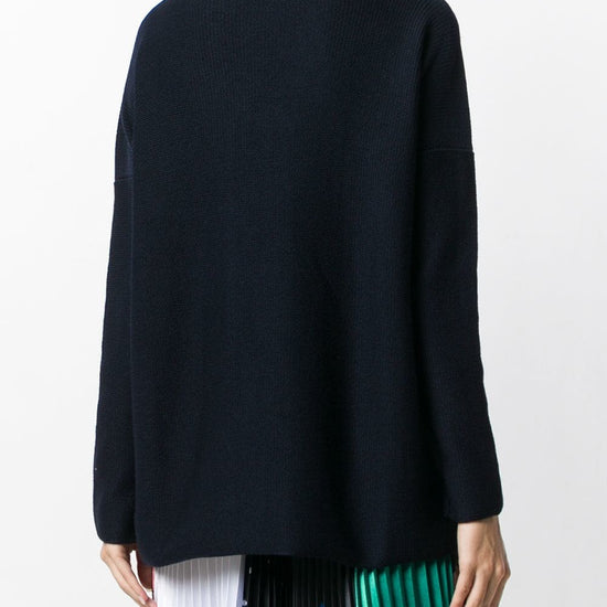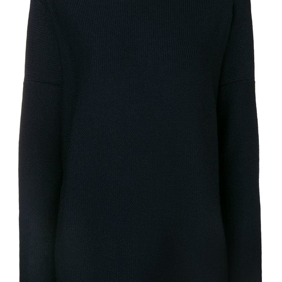 Navy blue wool basic jumper from daniela gregis featuring a halter neck and long sleeves. wool turtle-neck sweater size and fit - this piece fits true to size. we recommend you get your regular size. model is 1,75m / 5ft 8in wearing size uni