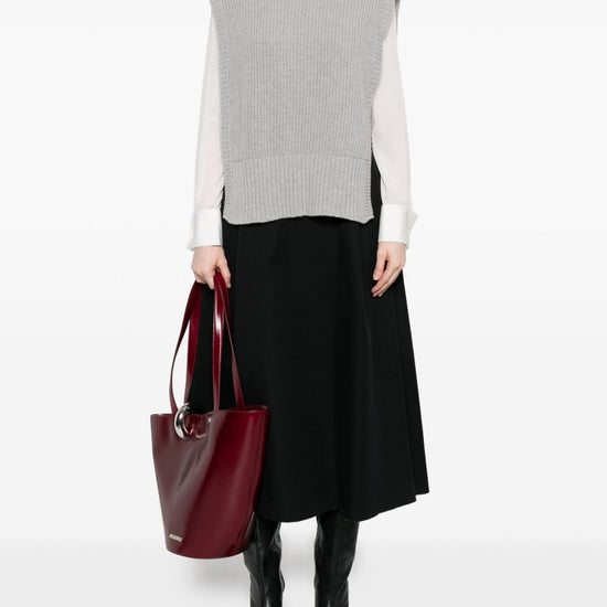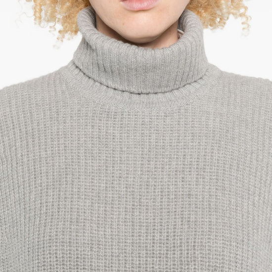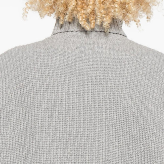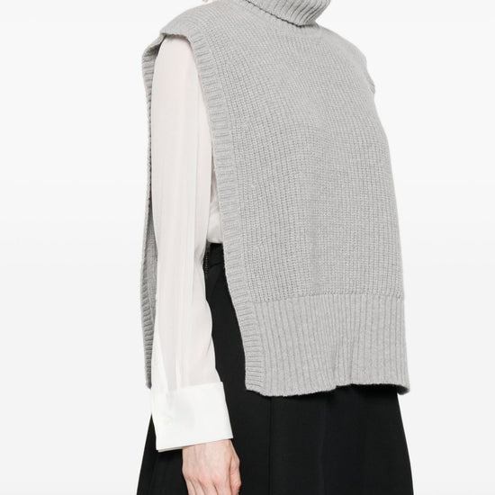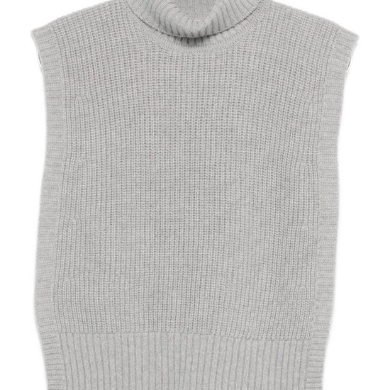 Light grey wool ribbed knit turtleneck neckline sleeveless straight hem wool turtle-neck sweater