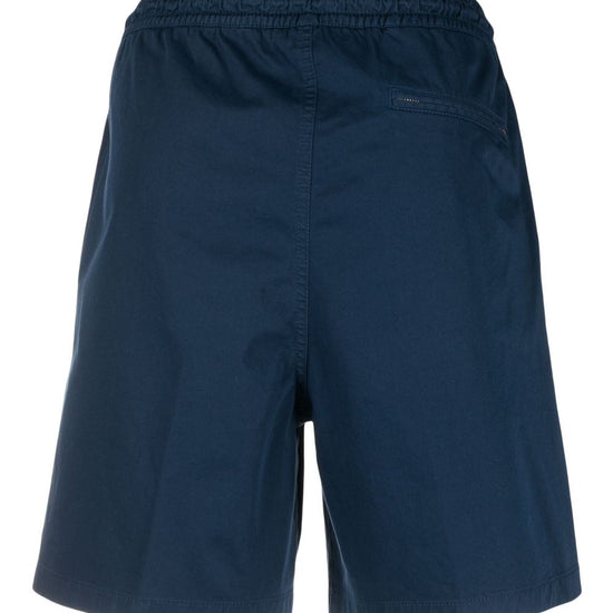 Drawstring stretch-cotton shorts from department 5 featuring prussian blue, stretch-cotton, logo patch to the side, elasticated drawstring waistband, rear zip-fastening pocket and straight leg. c/coulisse drawstring shorts size and fit - this piece fits true to size. we recommend you get your regular size. model is 1,84m / 6ft 1in wearing size m