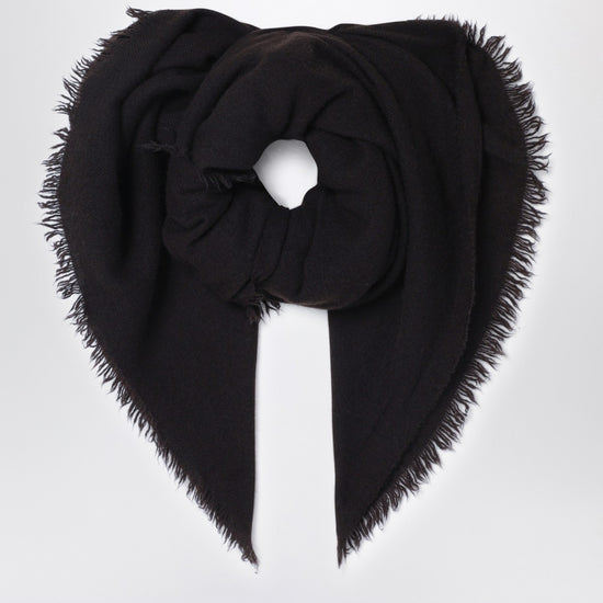 Ebony brown cashmere scarf by destin surl with frayed edges.