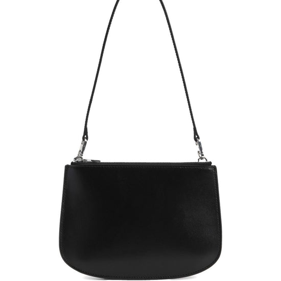 Black top zip fastening detachable shoulder strap 1dr twin leather shoulder bag
