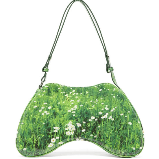 Green faux leather all-over graphic print top zip fastening single shoulder strap silver-tone logo plaque main compartment internal zip-fastening pocket internal logo patch full lining play shoulder bag size and fit - width 12,99 in / 33 cm