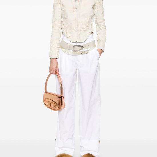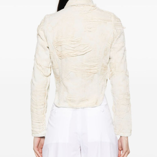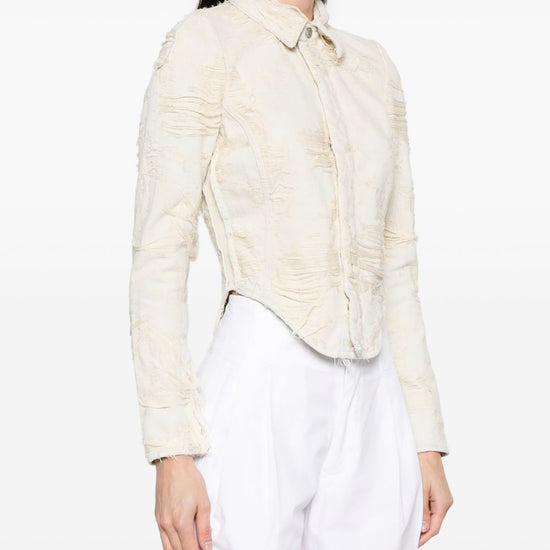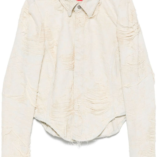 Almond beige concealed front press-stud fastening distressed effect long sleeves curved hem denim cotton shirt size and fit - this piece fits true to size. we recommend you get your regular size. model is 1,75m / 5ft 8in wearing size s