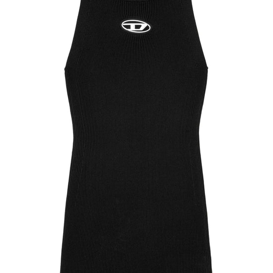Black fine ribbed crew neck oval d logo plaque sleeveless slim cut straight hem thigh-length oval-d mini dress size and fit - this piece fits true to size. we recommend you get your regular size. model is 1,75m / 5ft 8in wearing size s