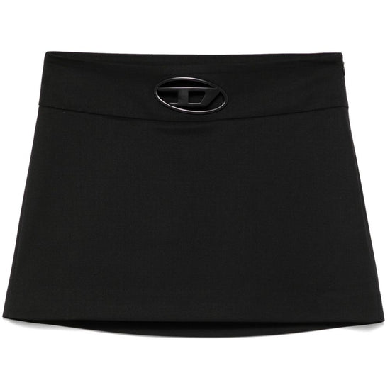 Black concealed side zip fastening oval d logo plaque cut-out detailing o-dixy wool blend mini skirt size and fit - this piece fits true to size. we recommend you get your regular size. model is 1,75m / 5ft 8in wearing size 40 (it)
