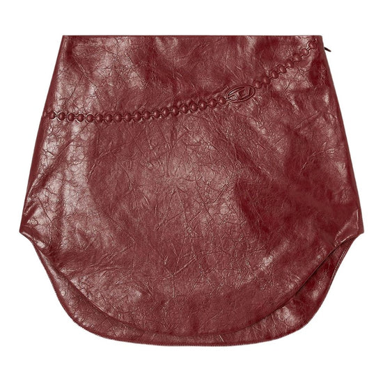 Brown textured finish embossed motif high-low hem side zip fastening mini length faux leather mini skirt