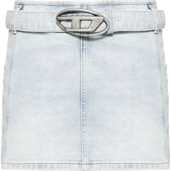 Light blue cotton washed denim oval d logo-buckle low-rise side zip fastening detachable buckle-fastening waist belt belt loops straight hem unlined thigh-length logo denim mini skirt size and fit - this piece fits true to size. we recommend you get your regular size. model is 1,75m / 5ft 8in wearing size 27 (waist cm)