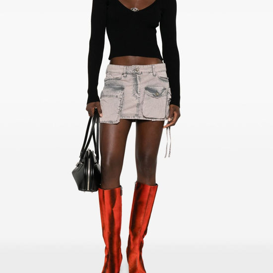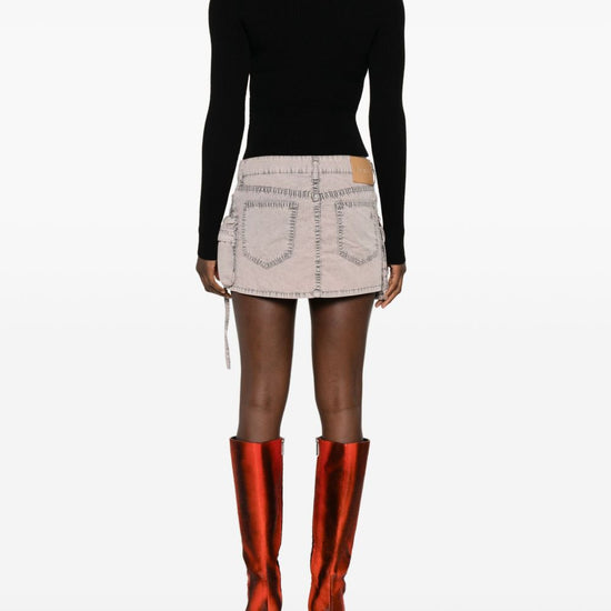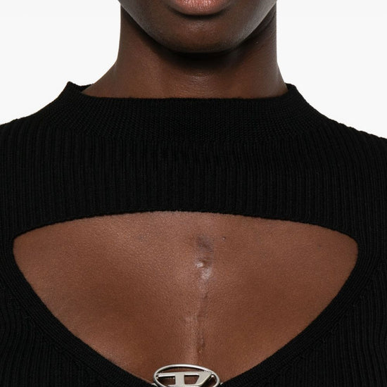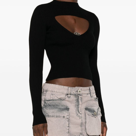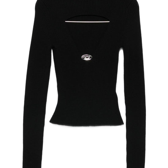 Black keyhole neckline ribbed fabric long sleeves logo detail wool cut-out top