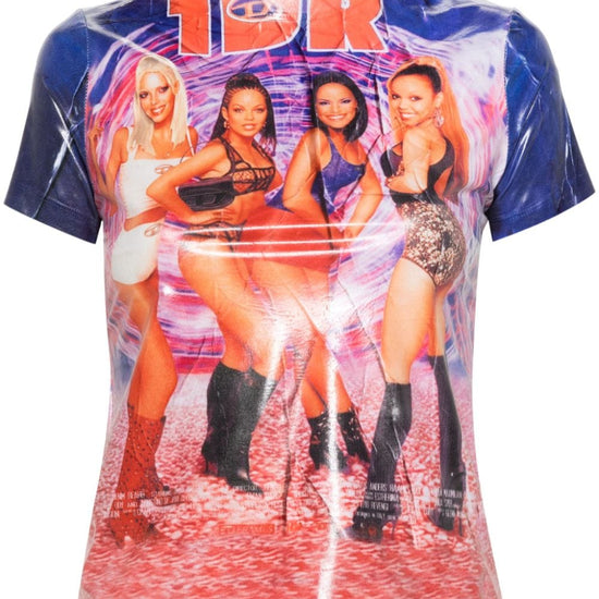 Multicolour stretch-design high-shine detailing all-over photograph print crew neck short sleeves straight hem pull-on style printed t-shirt size and fit - this piece fits true to size. we recommend you get your regular size. model is 1,75m / 5ft 8in wearing size s