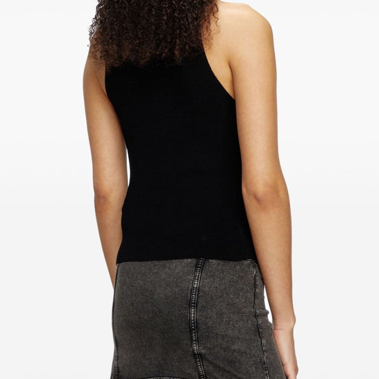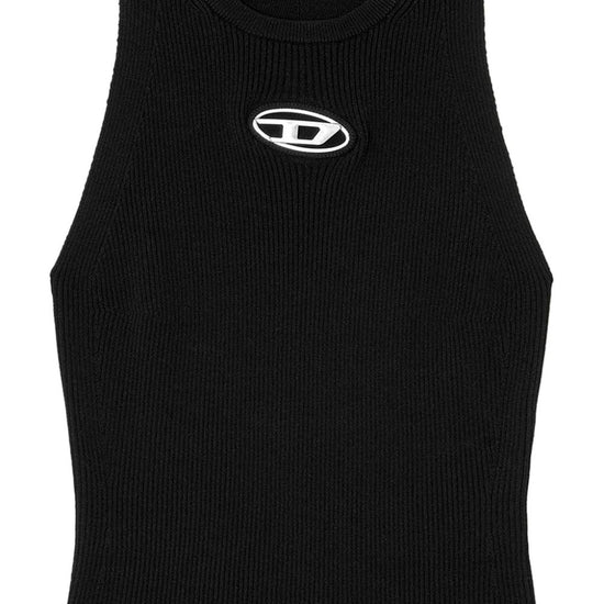 Black fine ribbed crew neck oval d logo plaque sleeveless straight hem oval-d tank top