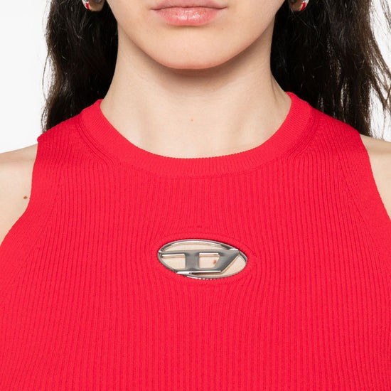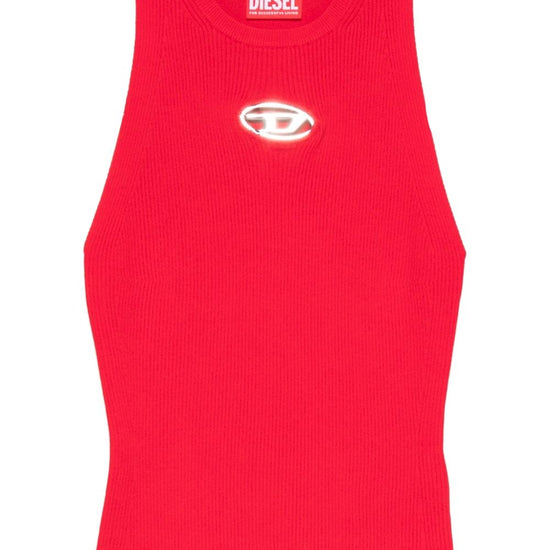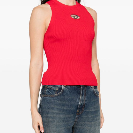 Red sleeveless round neck close-fitting logo detail logo tank top