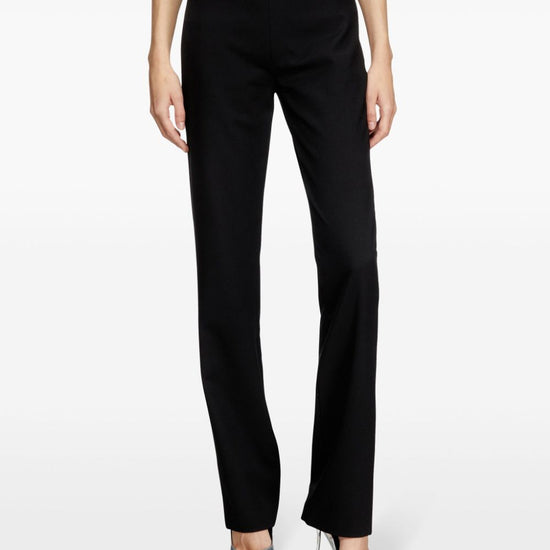 Black concealed side zip fastening oval d logo plaque high-waisted wool blend trousers size and fit - this piece fits true to size. we recommend you get your regular size. model is 1,75m / 5ft 8in wearing size 40 (it)