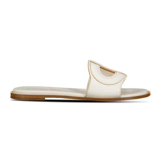 elevate your wardrobe with the dior d-club slide calfskin sandals in white. crafted from premium calfskin, these elegant slides feature a timeless and minimalist design, making them the perfect addition to any laid-back attire. the white upper with contrasting raw edges is enhanced by an openwork cd signature, adding a subtle 3d effect. ideal for effortless style, they combine luxury with everyday comfort.