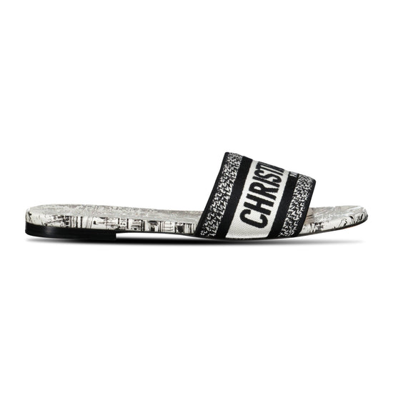 Dior D-Way Slide Calfskin Sandals White & Black